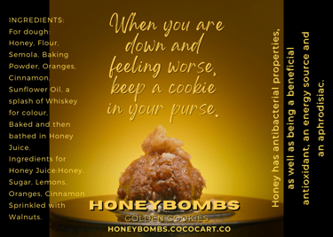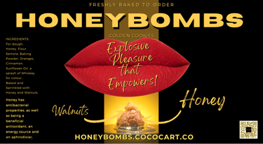 HONEYBOMBS are home made honey cookies. They use an 80 year old recipe. They stand for women's empowerment, body positivity and explosive pleasure with no guilt.